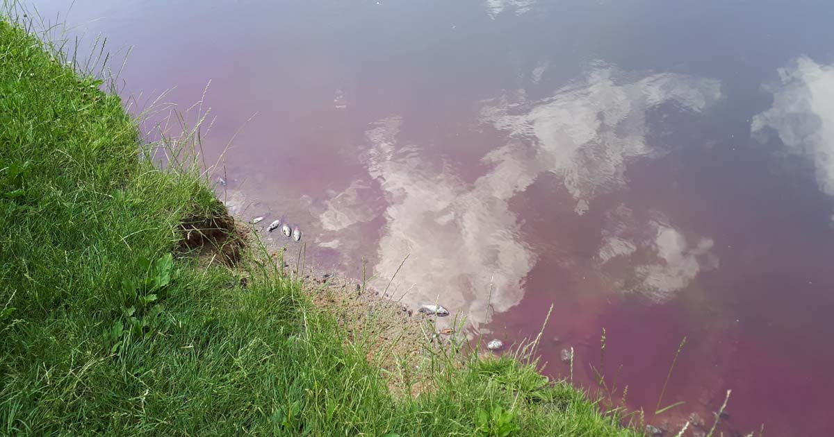 Sehr drastisch sieht man den Grund des Sterbens an der Färbung des Wassers. Dieses ist rot und weißt deutlich auf Algen in Blüte hin. Allerdings wundert uns genau das.
